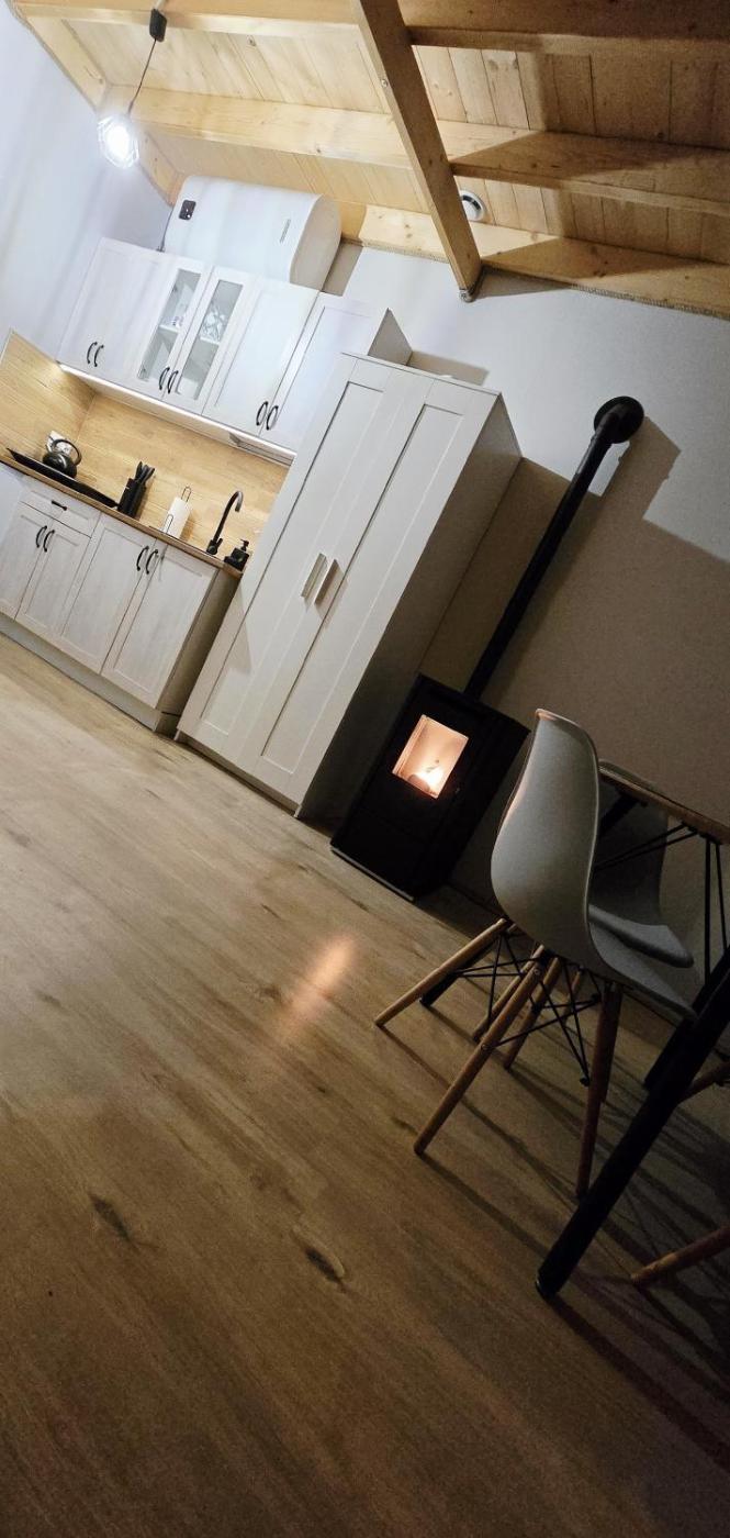Domek. Boasting a private entrance, this chalet includes a kitchen, 1 bedroom and 1 bathroom with a shower and a hairdryer. Guests will find a stovetop, a refrigerator and kitchenware in the kitchen. The chalet also features a barbecue. This chalet has a dining area, a wardrobe, a flat-screen TV and a terrace. The unit has 2 beds. Domek - 3 osobowy. Powierzchnia pokoju ok.: 21 mkw.