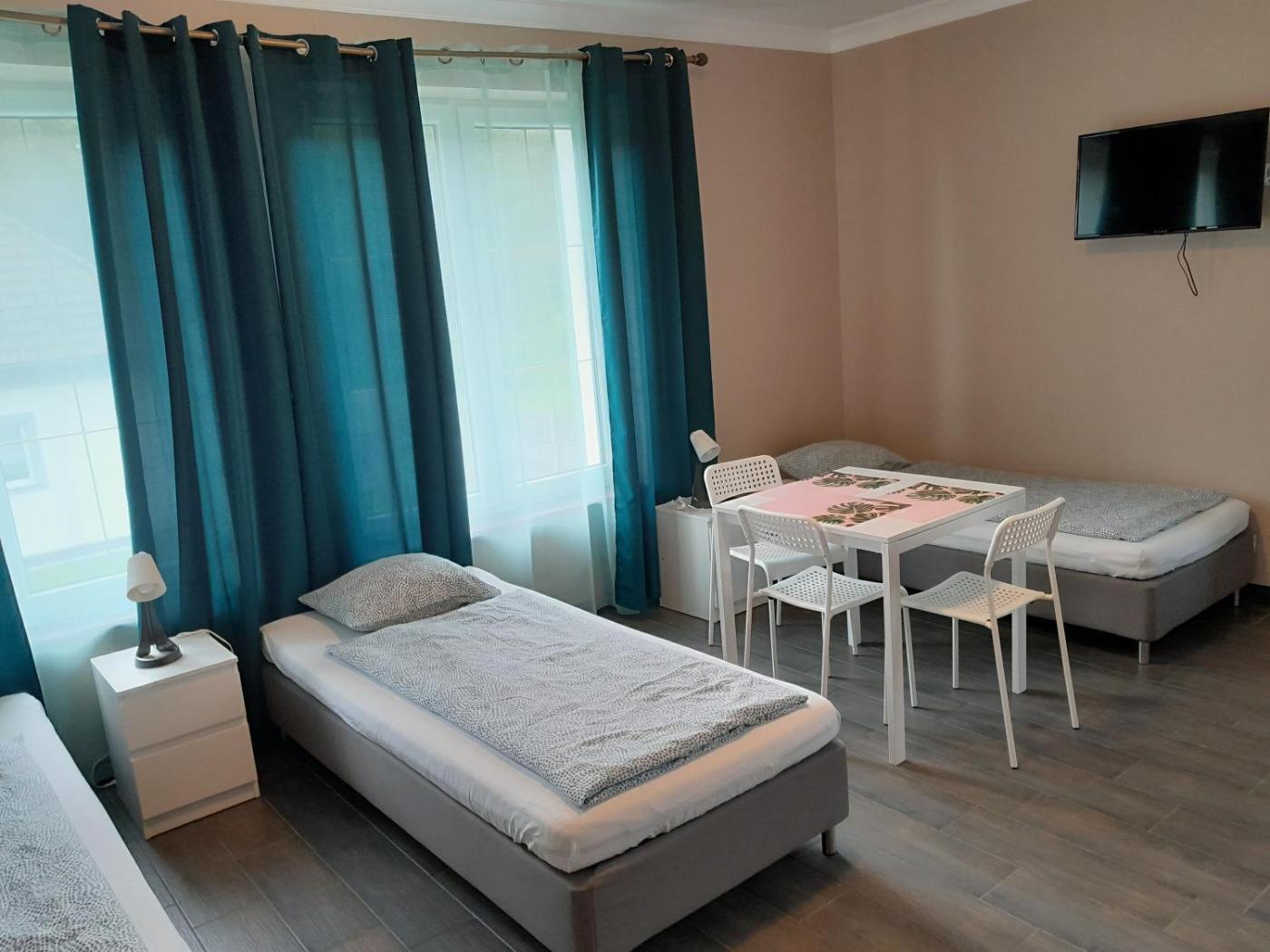 Apartament z balkonem. This apartment includes 1 bedroom, a kitchenette and 1 bathroom with a shower. A kitchenette fitted with a stovetop, a refrigerator and kitchenware is available for cooking and storing food. This apartment offers heating and a flat-screen TV. The unit has 3 beds. Apartament - 3 osobowy. Powierzchnia pokoju ok.: 26 mkw. ;