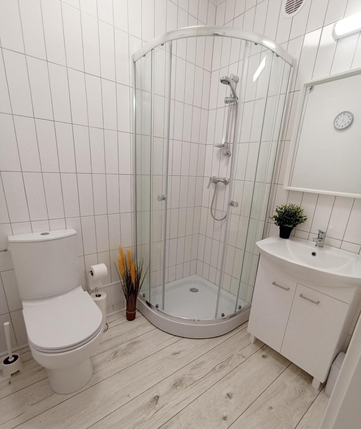 Apartament z 1 sypialnią. This apartment includes 1 bedroom, a kitchenette and 1 bathroom with a shower and a hairdryer. Guests can make meals in the kitchenette that is fitted with a stovetop, a refrigerator, kitchenware and a microwave. The apartment offers a flat-screen TV with streaming services, a wardrobe, an electric kettle, a carpeted floor as well as a quiet street view. The unit has 2 beds. Apartament - 2 osobowy. Powierzchnia pokoju ok.: 23 mkw.
